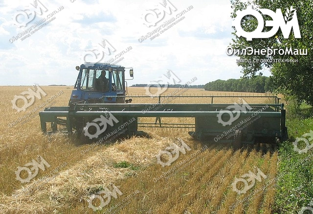 Жатка валковая прицепная ЖВП-4,9 предназначена для скашивания зерновых колосовых и крупяных культур с укладкой скошенной массы в одинарный встречно-поточный валок во всех зонах, где применяется раздельный способ уборки. Жатка обеспечивает: — укладывание валка хорошего качества и оптимальной мощности; — высокую продуктивность работы на скашивание и на подбор; — облегчение условий труда механизатора. Применение прицепной жатки ЖВП – 4,9 позволяет: — снизить затраты на раздельную уборку; — освободить часть комбайнов от работы с валковыми жатками; — более оптимально загрузить транспортный парк. Отличительные особенности: — на жатке установлен пальцевый режущий аппарат; — надежный привод режущего аппарата обеспечивает высокую скорость резания; — для упрощения перевода жатки в транспортное положение и обратно введено выдвижное дышло и изменено расположение опоры; — для улучшения ремонтоспособности изменена конструкция трансмиссионного вала. Оснащение: Мотовило — пятилопастное, двухэксцетриковое, противонамоточное с металлическими роликами, которые обеспечивают долговечность работы механизма наклона лопастей. Привод мотовила — ременной, не требующий установки дополнительного узла — предохранительной муфты. Амортизатор — пружинный, обеспечивающий идеальное копирование рельефа поля режущим аппаратом. Компенсатор -пружинный, позволяющий исключить отставание правого полевого колеса жатки и его травмирование. Прижим ножа — регулируемый, позволяющий просто и с высокой точностью выдержать зазор между сегментом и противорежущей пластиной, необходимый для качественного среза культур. Гидросистема — рукава высокого давления, использование которых позволяет увеличить надежность и срок службы гидравлики, а также упростить техническое обслуживание магистралей. Работает в агрегате: с колесными тракторами тяговых классов 1,4 и 2,0 тс(ЮМЗ-6, МТЗ-50, МТЗ-80, МТЗ-82 и т. д.)